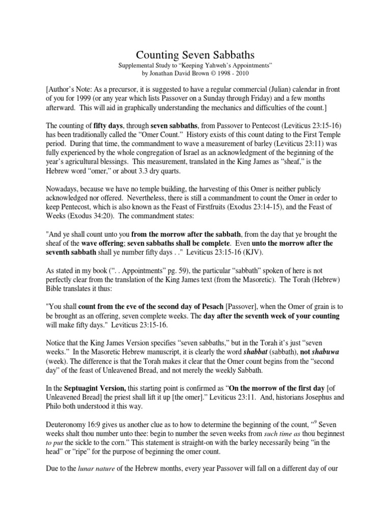 Counting Seven Sabbaths Passover Shabbat